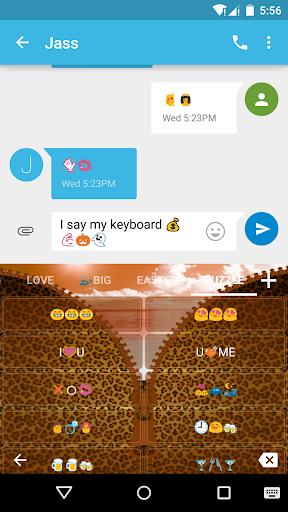 KK Emoji Keyboard is a free, smart and colorful Emoji Keyboard for Android that help you to fast input over 3000 emoji, emoticons, smiley, sticker and text face conveniently everywhere including message, text, email and chat with social app etc. It’s the best Emoji Keyboard for Android with over 100 beautiful themes, smart gesture type and auto correct, highly customization with color, layout, font and over 55 languages support.