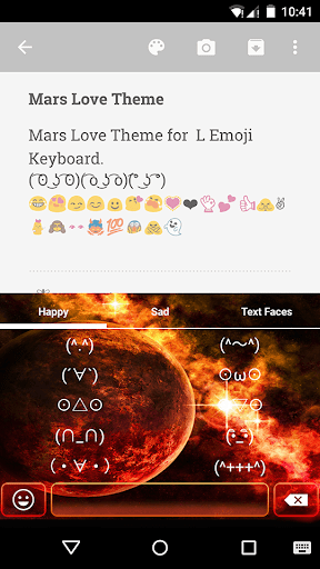 L Emoji Keyboard is a free, smart and colorful Emoji Keyboard for Android that help you to fast input over 3000 emoji, emoticons, smiley, sticker and text face conveniently everywhere including message, text, email and chat with social app etc. It’s the best Emoji Keyboard for Android with over 100 beautiful themes, smart gesture type and auto correct, highly customization with color, layout, font and over 55 languages support.