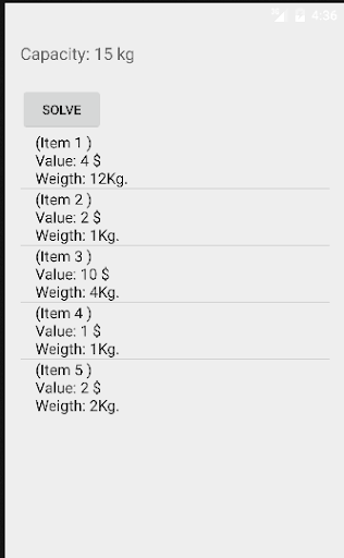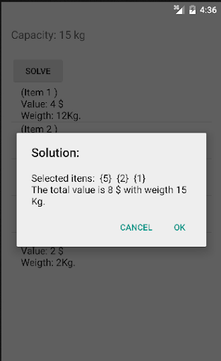 The knapsack problem or rucksack problem is a problem in combinatorial optimization: Given a set of items, each with a weight and a value, determine the number of each item to include in a collection so that the total weight is less than or equal to a given limit and the total value is as large as possible. It derives its name from the problem faced by someone who is constrained by a fixed-size knapsack and must fill it with the most valuable items.