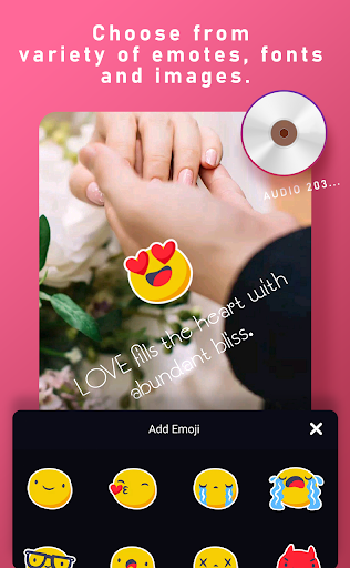 Audio Status Maker has some diverse spectacular backgrounds for your status. It also lets you create a status using your own custom images from the gallery or camera as the background.
