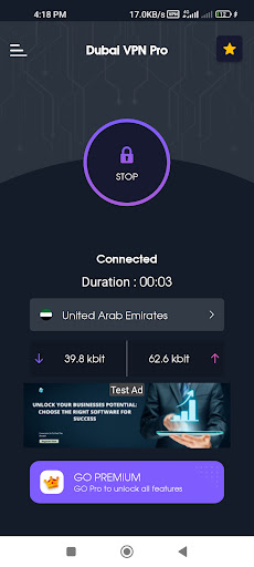 Dubai VPN Pro free version shows ads. Upgrade to premium to enjoy unlimited and ad-free VPN!