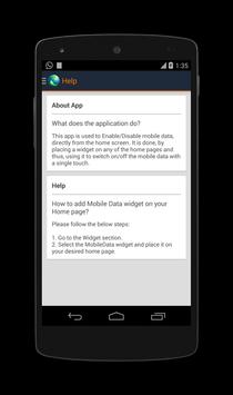 This app is used to Enable/Disable mobile data, directly from the home screen. It is done, by placing a widget on any of the home pages and thus, using it to switch on/off the mobile data with a single touch.