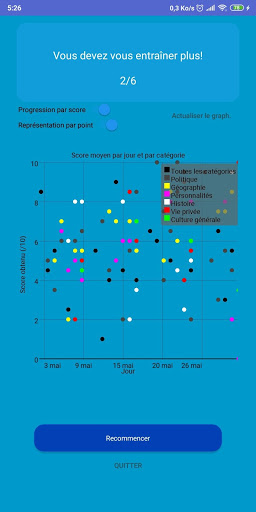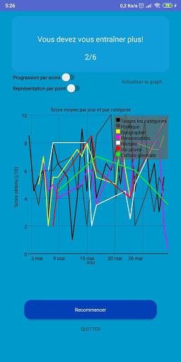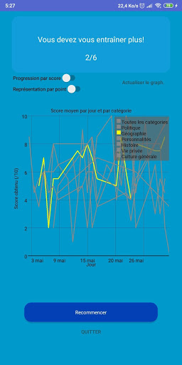 A la fin de chaque quiz, vous pouvez visualiser le nombre de questions sur lesquelles votre réponse a été marquée comme correcte.