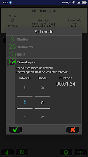 - Modes: Shutter, 2sec (2 seconds delay shutter), timer.