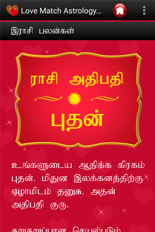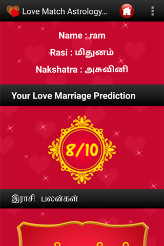 Just enter your Name, Rasi and Natshatra, see your Love Prediction, Rasi Palanal and Natshatra Palanagal ....