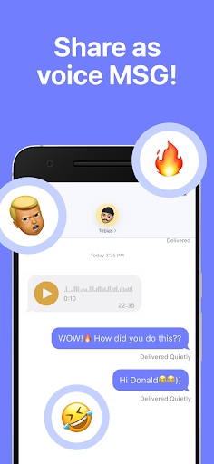 🔥Re Voice Changer - Free Voice Changer App🔥 is a voice changer free with various voice effects and audio effects. With the built-in voice mod, you can change the voice like playing voice games, for example, you can change a female voice into a man voice, you can change a baby voice into an old woman voice. You can also turn your voice into some animals, such as sheep sound or bee sound effect. Or you can convert voices into some funny avatars like zombie voice, robot voice, alien voice and monster voice etc. With the help of ambient sounds, you can make the sound as if it happens in different places like in a cave, in a rainy day, in a noisy street and in a train etc. More voice characters and effects are waiting for you to try. You will have a lot of fun with this funny voice changer & voice editor. Come and play the voice game!