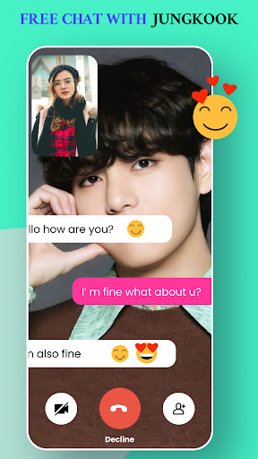 BTS Jungkook fake video call and chat could be a simple and straightforward application for you to create a fake video call together with your favorite singer Jungkook from bts band and chat stick out him in such a sensible way that nobody can guess that it's fake and can cheer up all of your relatives and friends, and family.