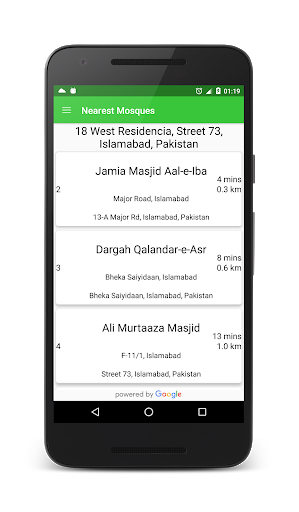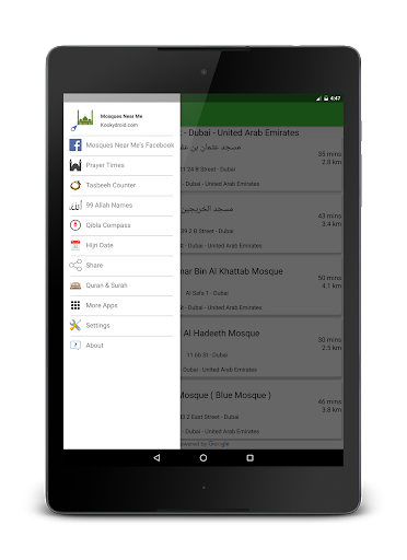 Shows the mosques nearest to your location or the popular mosque nearby. Can be changed from settings.