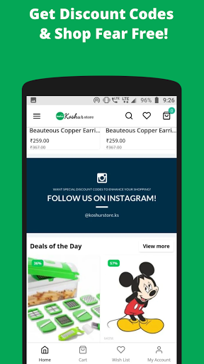 Online shopping with Koshur Store is very easy as you get to shop from the comfort of your home and get products delivered at your doorstep. By downloading the Koshur Store free online shopping app on your Android phone or tablet, you can effortlessly browse our massive collection of more than 80 crore products from multiple categories including mobile phones, fashion wear, electronic devices, videos, accessories and consumer durables.