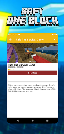 don't forget to share it with your friends if this is very fun RAFT Mod MCPE Map and can be played alone with your friends, raft survival multiplayer because it is more exciting maps block raft survival mcpe if with older ones, because more one block survival island experienced in playing see you later