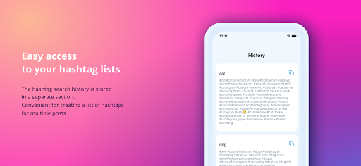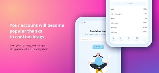 - Convenient search for hashtags by word to get likes;