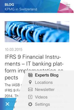 Read the latest blog articles and get insights from our Swiss experts, receive customized push notifications for new content, navigate to all KPMG offices or watch the most recent videos - all on your phone with the KPMG Knowledge Mobile App.