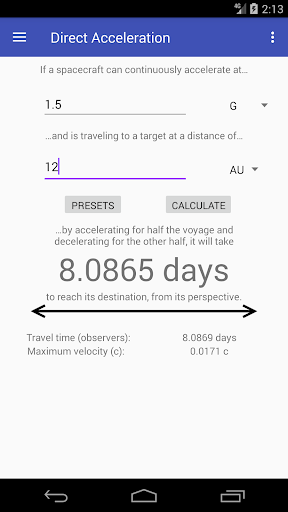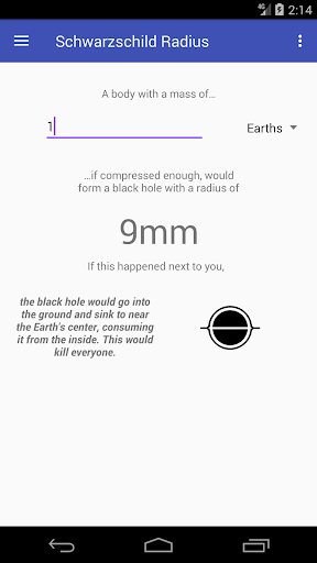 Note that this app, despite being merely an astrophysics calculator, does contain ads and in-app purchases. The ads are small and don't interfere much, but if they bother you, an in-app purchase is offered to remove them entirely. Either way, you're supporting the developers, and we thank you for that!