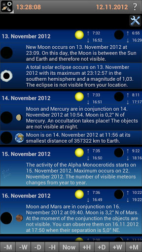 Do you want to know if the next lunar eclipse is visible from your location or when the next bright comet is visible? Would you like to be notified by your smart phone next time, Jupiter and the Moon meet in the sky? Do you want to know what the blazing bright object in the evening sky is? Do you want to be always up-to-date which celestial events that are visible from your location? Then this app is a must-have for you!