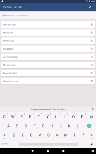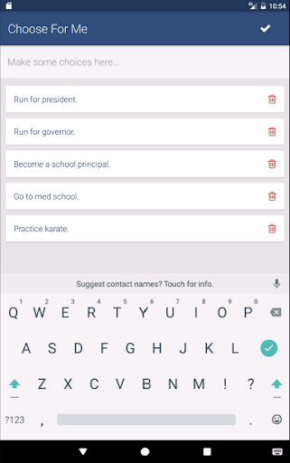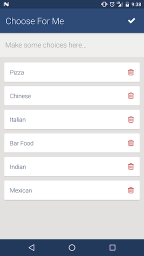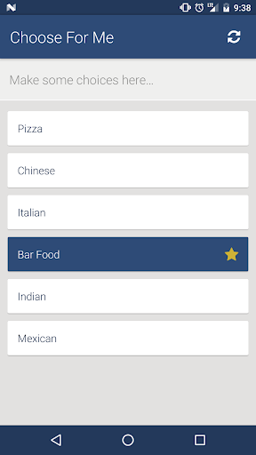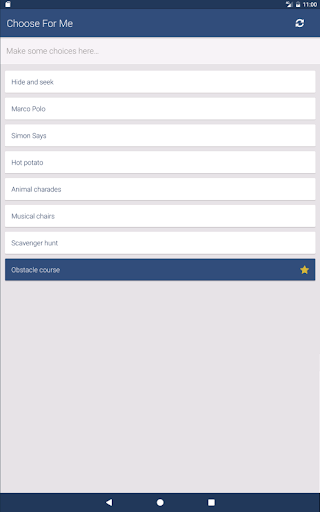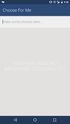 Just open the application and start adding your choices by typing them into the input. To save you some time, when the app is opened, we put focus on the input and open your keyboard, so you can immediately start typing. When you're done adding, press the check mark on the toolbar, and let the app do the hard work of coming to a conclusion for your decision. The selection will color in blue and give you a nice star, letting you know that is your pick.