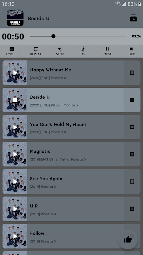 You can play many songs from favorite Monsta X 몬스타엑스 singers. This application is very easy to use.