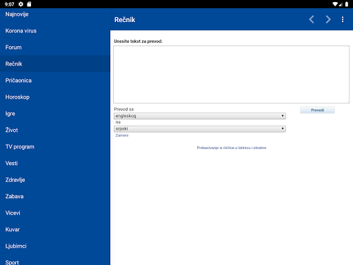 Política, Sérvia, Economia, Crônica, Região, Mundo e esportes são apenas algumas das muitas rubricas.