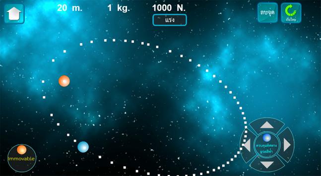 - การจำลองการเคลื่อนที่ตามสมการแรงดึงดูดระหว่างมวล