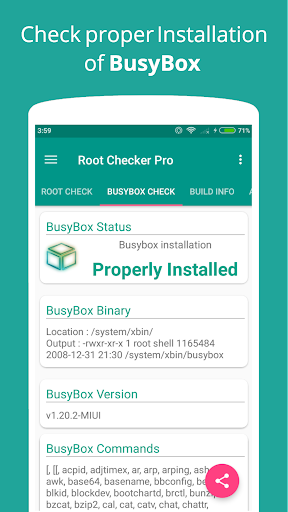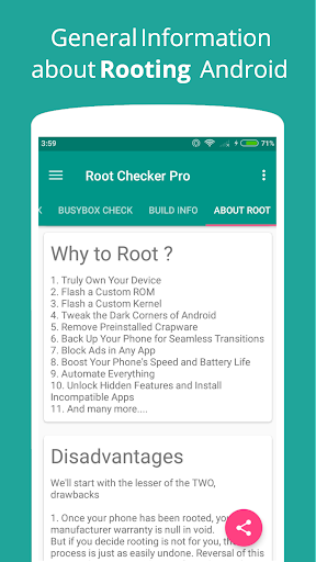 Along with that, root checker also checks the system for busybox installation and also provides the user some basic info on why rooting their device may or may not be beneficial for them.
