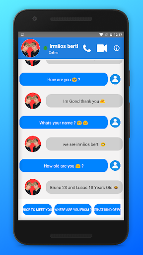 irmaos berti jogo fake video call is a simple application is very profissionel application to make call video with your hero irmaos berti jogo chat call and fake video call with a simple live chat, Enjoy calling irmaos berti jogo, feel free and download this irmaos berti jogo video call for have fun with friend. irmaos berti jogo video Call, Today you can prank your friends and joke with them, Connect to irmaos berti jogo fake chat by clicking on the fake chat button and have fun with irmaos berti jogo call with your friends.