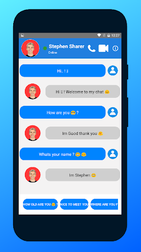 Stephen Sharer fake video call is a simple application is very profissionel application to make call video with your hero Stephen Sharer chat call and fake video call with a simple live chat, Enjoy calling Stephen Sharer, feel free and download this Stephen Sharer video call for have fun with friend. Stephen Sharer video Call, Today you can prank your friends and joke with them, Connect to Stephen Sharer fake chat by clicking on the fake chat button and have fun with Stephen Sharer call with your friends.