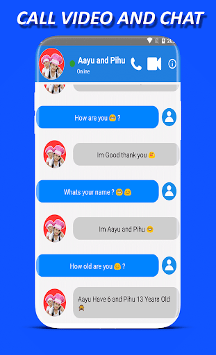 Aayu and Pihu fake video call is a simple application is very profissionel application to make call video with your hero Aayu and Pihu chat call and fake video call with a simple live chat, Enjoy calling Aayu and Pihu chat in an easy way, feel free and download this Aayu and Pihu video call for have fun with friend. Aayu and Pihu video Call, Today you can prank your friends and joke with them, Connect to Aayu and Pihu fake chat by clicking on the fake chat button and have fun with Aayu and Pihu call with your friends.