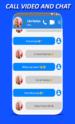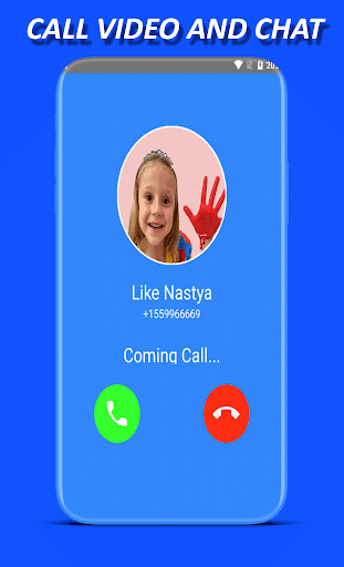 Like Nastya call you : Fake call and video call application to accompany your days in your free time when you feel lonelyand boring then entertain yourself with fake calls from your idol. this application to simulation a fake chat messenger with a fake call and video call, we add option to start live with your Like Nastya, to look a real chat messenger live. all this just for prank your friends or your family to make a fake chat with favorite stars Like Nastya to be a real chat, you have three option to connect with Like Nastya Call Like Nastya calling voice, Like Nastya live chat or Like Nastya calling video, Download Like Nastya fake video call and enjoy with friends