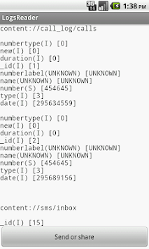 Description of SMS and calls logs reader