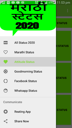 Marathi Attitude Status 2020 is completely Free and Best Marathi Status. set Best Status and Marathi Shayari on Facebook ,Whatsapp or social media. Marathi Status Application is large collection of Status or Shayari.