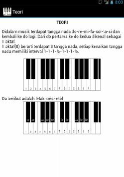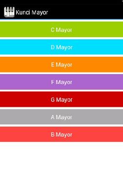 List untuk versi 1.0 adalah kunci mayor, minor, diminis dan mol. Dimana setiap menu terdapat 7 tangga nada yaitu C, D, E, F, G, A, B yang disertai teori singkat mengenai papan kunci dan gambar didalamnya untuk mempermudah pengguna awal memahami piano.