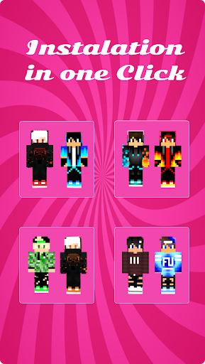 Skinpack contains: skins of Among us skins for players, skins in a hoodie, boy, girl, noobs, military skins, griffers, camouflage skins, skins of superheroes, skins of transformers, skins from star wars, Momo, Freddy , Shadow Freddie, Phantoms, Crying child, animatronics, letsplayers, zombies, horror skins, bloody skins, animal skins, bears, Winnie, robots, beard, space suits, astronaut skins, sports skins, ghosts, youtubers, streamers, in a coward Ah, Cyclops skins, goblins and mutants, Anonymus skins, soldier skins, warriors skins, assassin skins, space attack aircraft, Mortal Kombat, Skins of popular rappers, fairytale heroes, Foxy, Chiki, madmen, scientists and many other popular skins You can find in this application.