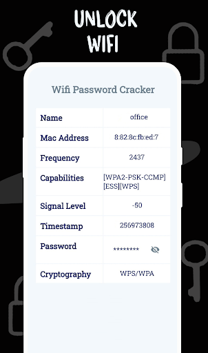 WiFi cracker is a free WiFi helper and wifi booster that gives you access to open hotspots and WiFi near you. and also connects automatically.