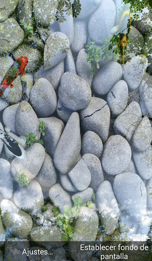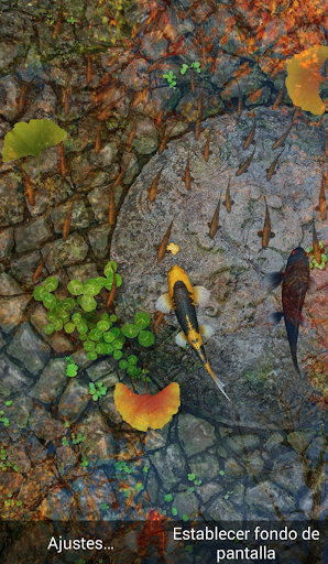 Coloca un bello fondo de pantalla nimado con peces Koi, toca el agua para interactuar o darles de comer. Selecciona entre una gama de colores variados y personaliza el fondo del acuario.