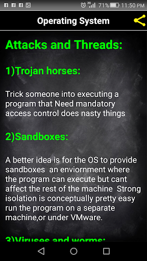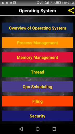 It contains easy notes of operating system.It explains the core concepts of operating system with diagrams and easy manner.Any person having less knowledge of operating system will be capable of learning the operating system by simply using the application.