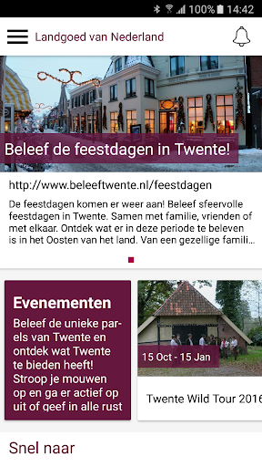 Deze App geeft u een indruk van die aspecten die Twente zo uniek maken. In de App vindt u unieke evenementen, bijzondere overnachtingsmogelijkheden, culinaire hoogstandjes en bezienswaardigheden die u niet mag missen als u een bezoekje aan Twente brengt!