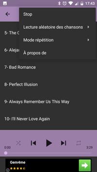 This app contains the newest and best songs of Lady Gaga. It works offline. The sound is of high quality. This app is well designed and easy to use. You can download it for free. You can also share this app with your friends. If you enjoy it, would you mind taking a moment to rate it? Thanks for your support