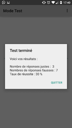 - Test Mode : You can choose a number of questions you will have to solve. The same options as the exercise mode are available. After the test, statistics on your results are displayed and you show your level of success.