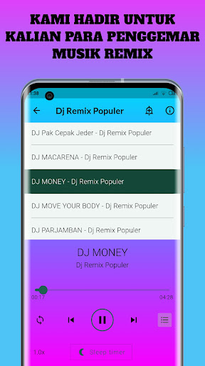 Aplikasi Kumpulan dj remix viral dan terpopuler saat ini, buat penggemar musik tiktok aplikasi ini sangat tepat sekali untuk kalian, karena di dalam aplikasi ini terdapat banyak pilihan lagu viral tiktok yang lagi hits dan populer saat ini, dan kalian tidak usah kwatir dan ragu karena kalian dapat memutarnya dengan mode offline tanpa bufering sama sekali , dan kami sajikan dengan kualitas suara yang sangat jernih yang akan memanjakan telinga, jadi apa lagi yang kalian tunggu , buruan instal dan bagikan ke teman dan rekan kamu agar terhibur.