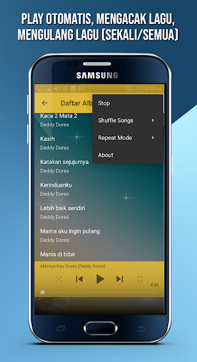 このアプリケーションに含まれている人気のあるソングDedy Dores(プレイリスト)のリストは、常に最新の曲で更新します。