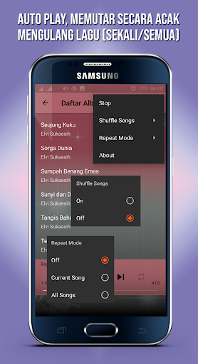- Optionen, um den Song zurückzuspielen (Wiederholung) zu Ihrem einfach wollen oder wiederholen Sie alles automatisch