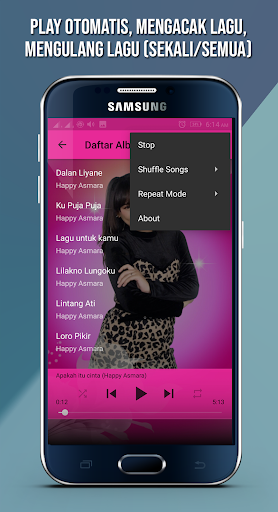 Aplikasi ini mengandungi koleksi terkini lagu-lagu "Happy Asmara" dan album penuh yang boleh dimainkan di luar talian dan anda boleh memuat turun secara percuma.