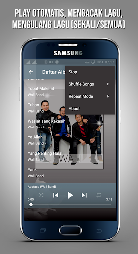 - wybór Odtwórz losowe utwory (shuffle) lub sekwencyjnie - Opcje Odtwórz piosenkę (powtórz), jak chcesz lub powtarzasz wszystkie automatycznie - podziel się znajomym lub mediów społecznościowych, takich jak Facebook, Twitter, Whatsapp i inne.