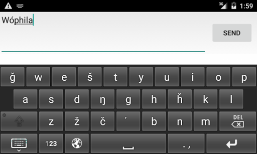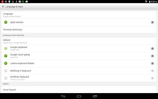 Lakota Keyboard - Mobile is the Setting app that let's you type correct Lakota into any text area on your mobile device by simply switching into the Lakota Keyboard Mobile option in the KEYBOARD & INPUTS METHODS section of the LANGUAGE & INPUT area of the SETTINGS.