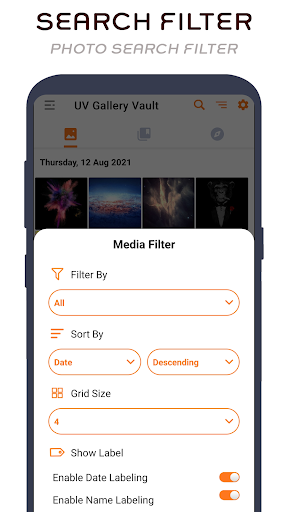 You will get surplice to see search image function, now with using Gallery Vault you can search photo using color. You have to just select color from top bar and search for image that captain that color.