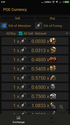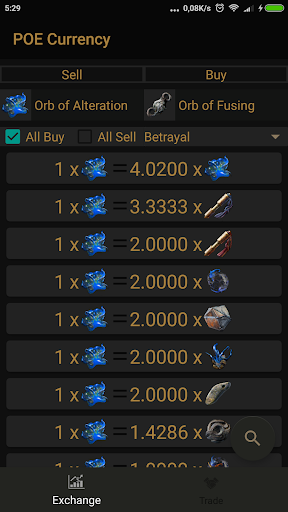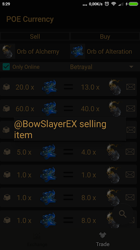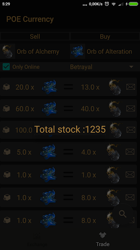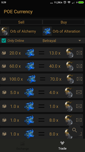 For the Path of Exile game, you can see the most used currencies in all leagues according to the market value, the sales sold in the market, the name to contact the sales person and the stock value if the stock value is entered.