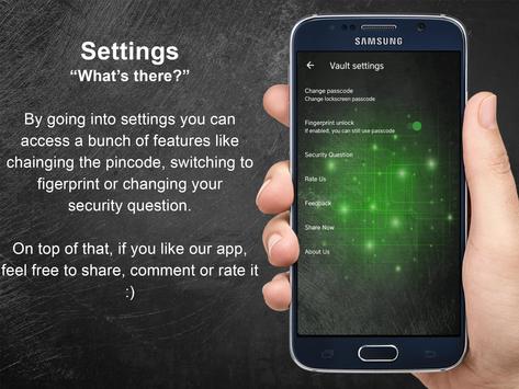NOTE: Your device must have a fingerprint sensor for fingerprint unlock, but if your device does not have a fingerprint sensor, app will still work well with pin, passcode or pattern