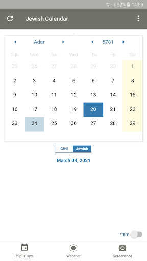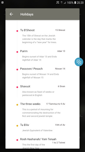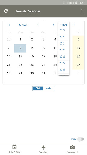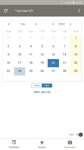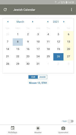 1. Instant toggle between the Hebrew and the Gregorian Calendar