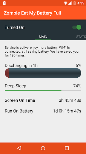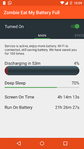 Battery Saver: Zombie Eat My Battery will save your battery usage by managing your data connection using smart algorithm. Just install this app and activate service to get more juice, without complex settings.
