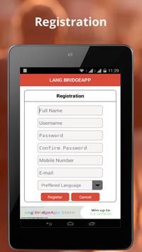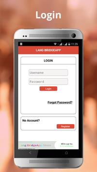Life has just become easier with Lang BridgeApp: Free smartphone text messenger that features real-time language translation. Enjoy the experience of chatting with someone of a completely different language without the worries of a language barrier. Send unlimited text, pictures, emojis, and video messages to anyone "ANYWHERE" who has Lang BridgeApp installed in their Android device. Simply connect to 3G, 4G, or Wifi; register an account, select your preferred language, add a friend, begin texting, and let Lang BridgeApp handle the rest.