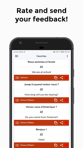 -- each phrase with speech of native speaker help you learn speak French correctly